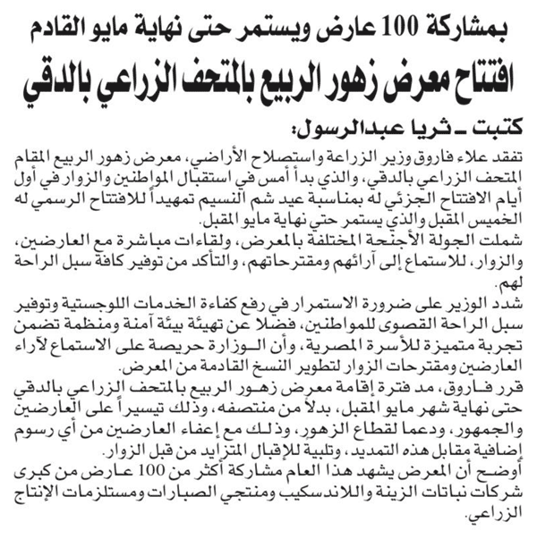 تتمة المنشور ومزيد من صور الافتتاح على صفحة المكتب الإعلامي لوزارة الزراعة واستصلاح الأراضي على منصة ’فيسبوك’