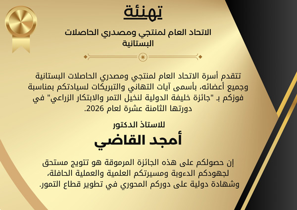 يعلن الإتحاد العام لمنتجي ومصدري الحاصلات البستانية,